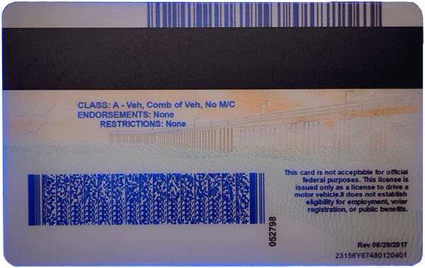 Our fake California CDL includes advanced manufacturing techniques to simulate the original’s layers and functions: