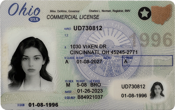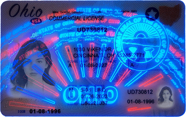 Our fake Ohio CDL includes advanced manufacturing techniques to simulate the original’s layers and functions: